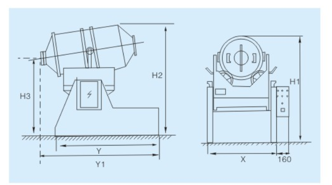 3、工作時,在轉(zhuǎn)動機(jī)構(gòu)和擺動機(jī)構(gòu)的雙重作用下,裝料的料筒作轉(zhuǎn)動的同時,又有擺動運動,從而使筒內(nèi)的物料得以充分混合。