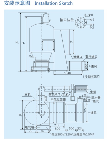5.gfg型高效沸騰干燥機采用蝶閥封頭,風阻小,無死角。密封操作、無污染,符合“GMP”要求。