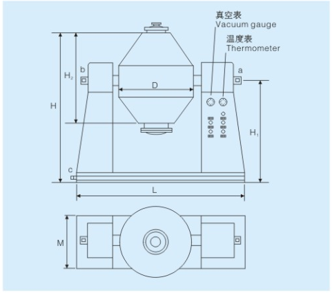 3.雙錐回轉真空干燥機的熱效率高,比一般烘箱提高兩倍以上;