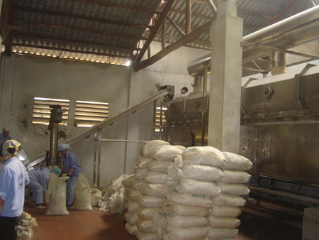 2010年2月我公司為越南河內(nèi)一客戶設(shè)計(jì)制作3噸/小時(shí)食鹽干燥線順利抵達(dá)越南河內(nèi)。在我公司的2工程師及客戶大力配合下,在二星期內(nèi)完成安裝調(diào)試。經(jīng)過使用,機(jī)器的產(chǎn)量等參數(shù)都達(dá)到客戶的要求??蛻魧⒃诮衲昴甑桌^續(xù)增加此干燥線去取代他們老式的干燥機(jī)器。